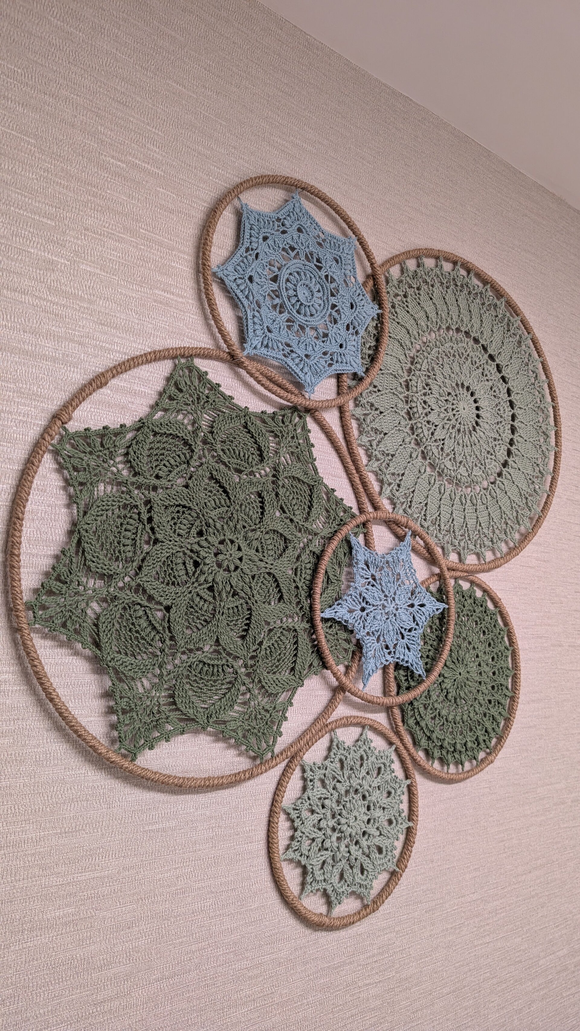 What truly sets our Mandalas apart are the special crocheting stitches. We invite you to observe the intricate patterns and delicate textures that give each creation its distinctive character, a testament to traditional craftsmanship and modern design.