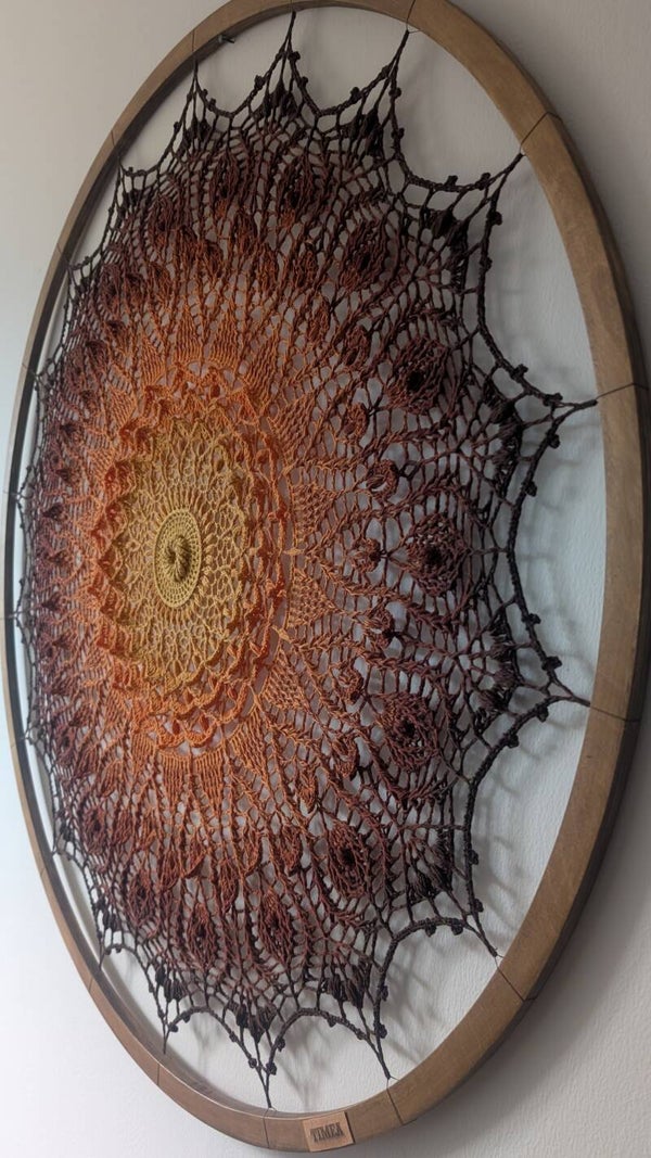 83cm crochet Manda wall art from cotton yarn on wooden frame